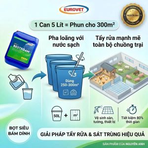 - 🧬 PHÁ VỠ MÀNG BIOFILM: Loại bỏ nơi trú ngụ cuối cùng của vi khuẩn, giúp chuồng trại sạch chuẩn an toàn sinh học.